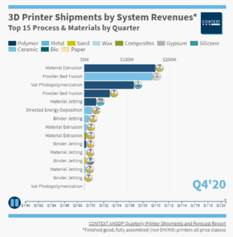 * CONTEXT’s statistics include the periodical, non-cumulative, and global shipments of new and finished printers in the four price-level groups: personal (<25,000 USD), professional (25,000-20,000 USD), and design (20,000-20,000 USD). -100,000 U.S. dollars) and industrial (above 100,000 U.S. dollars). Does not include personal DIY kits.