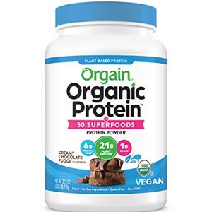 Orgain Organic Plant Based Protein + Superfoods Powder, Vegan, Non Dairy, No Sugar Added, Gluten Free, Soy Free, Non-GMO, Creamy Chocolate Fudge, 2.02 Lb (Packaging May Vary)