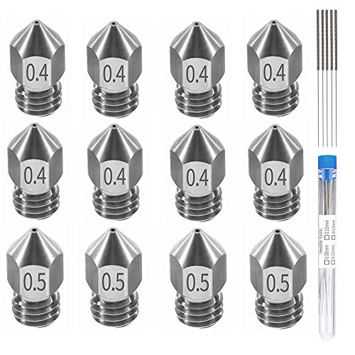 \n12 pcs Mk8 0.4 mm/ 1.75 mm and 0.5mm/1.75mm 3D Printer Nozzles,