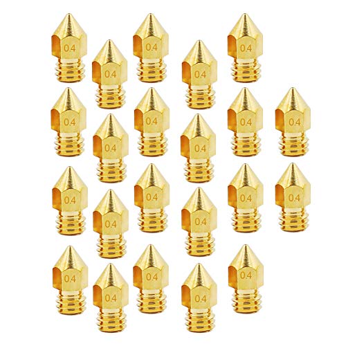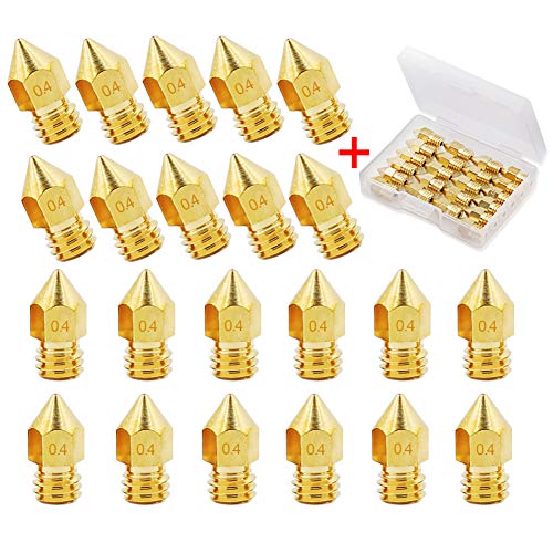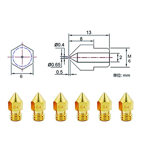 【Parameter and Specifications】Input diameter 1.75mm, Output diameter 0.4 mm, out thread M6, Thread length 4mm; 22pcs x 0.4mm 3d printer nozzles(output diameter) with storage box packaging. And the outer surface is marked with a size, So you can easily identify the specifications of the nozzle.