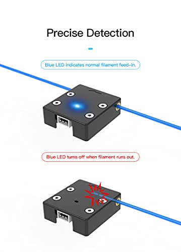 Precise detection: the blue LED indicates normal filament feed and the blue LED goes out when the filament runs out.
