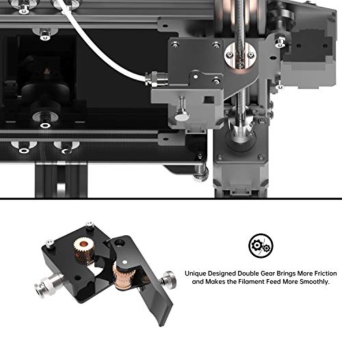 【Unique Design】 A Glass Platform is Placed Above Heated Bed, Which Will Ensure Constant Surface Temp. When Heated, the First Layer Can Be Tightly Stuck to the Platform. In the Mean Time, When Cooled, Models can be Easily Removed by Hands. Unique Designed Double Gear Brings More Friction and Makes the Filament Feed More Smoothly.