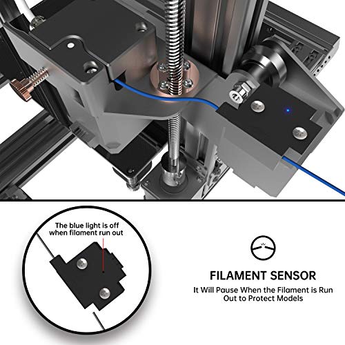 The Blue Light Will be Off When Filament is Run Out , So that You Can Timely Input Filament and Save Your Print Time! This 3D Printer Is Widely Compatible With Different 1.75mm Filaments, Like PLA, PETG, SILK, WOOD and etc.