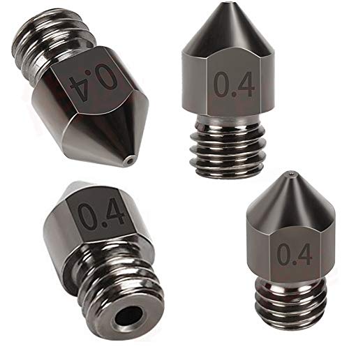 6 Pieces hardened steel tool high temperature pointed wear resistant MK8 nozzles 0.4 mm/ 1.75 mm 3D printer compatible with Makerbot, Creality CR-10 All Metal Hotend, Ender 3/ Ender3 pro, Prusa i3