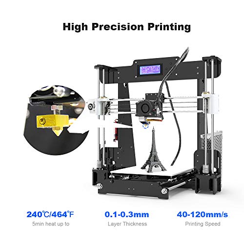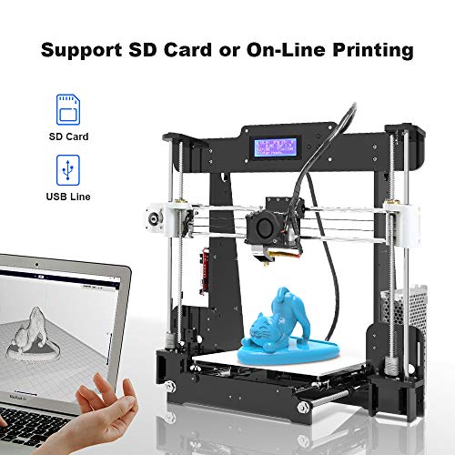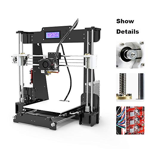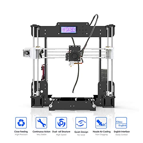 High compatibility: supporting XYZ printing bio-degradabl and multiple filaments like ABS/ PLA/ HIP/ PRTG/ TPU/ Wood/ Nylon/ PP etc.Hotbed: 220 x 220mm ( 8.6″ x 8.6″ square) Large-size aluminum printing platform. Aluminum plate can bear higher temperature. Reduce curl edge rate.Mainboard: Highly integrated one board, to solve the Ramps1.4 modular interface cumbersome, easy to trouble the problem. Large USB, more stable connection, the interface is more concise, wiring more convenient, more stable work, longer life. The use of high-performance low resistance through the Mos tube to do the drive, cooling better.2004 LCD display: Large size screen, clear white characters with blue backlit, more information showing easy control.Frame Material: Acrylic + Lead ScrewHotbed Material: Aluminum AlloyPopular: Great gifts, DIY lover, Student inspiration course, DIY toys for kids, DIY decoration for home, DIY model in achitechive/ Jewelry industry/ Medical industry/ Industrial parts etc..