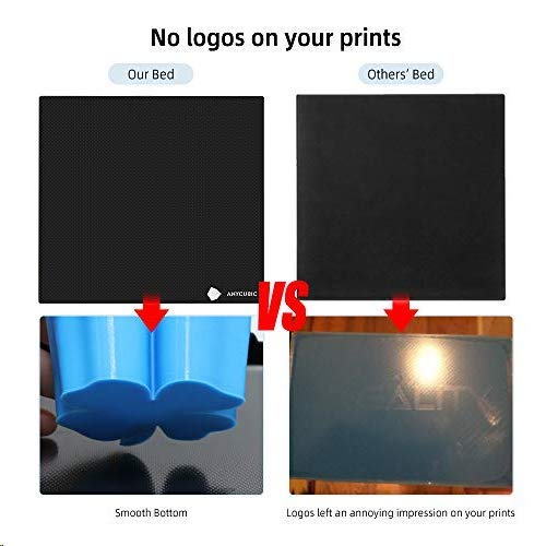 Customized Design: Compared to any other heated beds in the market, our small Anycubic logo is located on the bottom right corner, never worry about leaving logos on your prints.