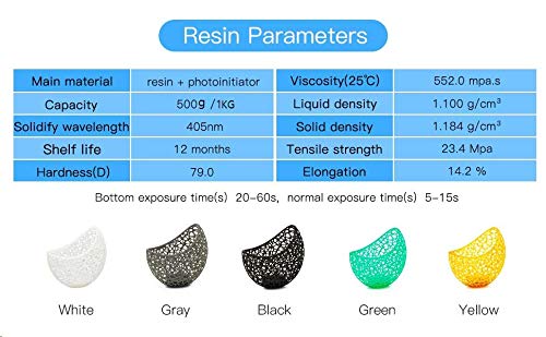 【High Precision】: With this printer resin, printed parts will have high detail with no deformation or noticeable shrinkage and the final cured pieces are strong without being brittle