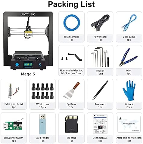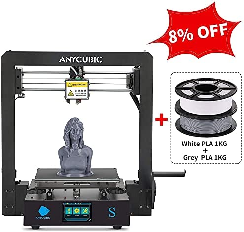 ① ANYCUBIC Mega S 3D Printer, Upgrade Metal Frame FDM 3D Printer with Extruder and Suspended Filament Rack + Free Test PLA Filament, Works with TPU/PLA/ABS, 8.27”(L)x8.27”(W)x8.07”(H) Printing Size
