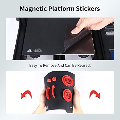 EASY TO DEMOLD:The surface of the hot bed is equipped with elastic Magnetic suction stickers, which can be removed after printing, and the stickers can be quickly demolded by bending. The Magnetic suction sticker can restore, confidence to use.