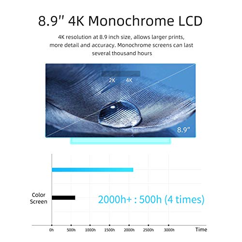 4K Monochrome Screen: ANYCUBIC Photon Mono X is a new UV Photocuring 3D printer with ultra-high resolution (3840*2400 pixels), highly restored details, and the screen service life is up to 2000h, more durable than ordinary color screen.