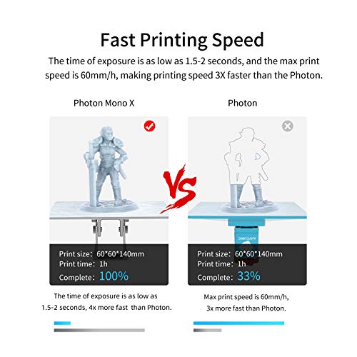 3X Fast Printing: single-layer exposure only takes 1-2 seconds, and the printing speed is Max 60mm/h, which is 3 times faster than ordinary resin printers. Do you want to finish printing faster? This printer help you to obtain higher quality models in a shorter time.