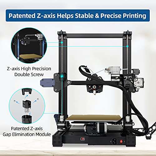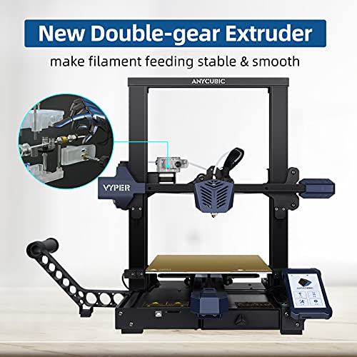 Double-gear Extruder & Patented Z-axis: Compared to ANYCUBIC MEGA 3D printers or other FDM 3d printer machines on the market, ANYCUBIC Vyper featured with newly double-gear extrusion system to ensure filament feeding more stable and smoother, and reduce filament tangle; patented Z-axis gap elimination module is designed to makes printing machine’s Z-axis moves more smoothly, to avoid printing layer marks and ensure precise printing.