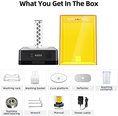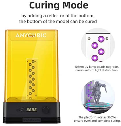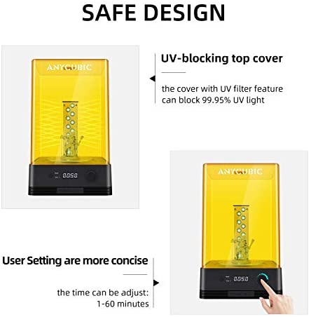 Custom Time Adjustment: 1-60min time adjustable, knob custom cleaning and curing time. Each layer of the 3D printer model can be better cleaned and cured according to your DIY needs. After cleaning and curing the model, the performance is significantly improved, helping you create a perfect model.