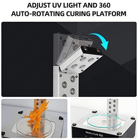 Large-size Clean & Cure Box: It has a 2-in-1 multi-function of cleaning and curing, which can efficiently and quickly help you complete the processing of the resin model. It is the best assistant to create a perfect model. It is suitable for all LCD light-curing printers of 8.9 inches and below on the market. The hanging cleaning size is 192mm(L)*120mm(W)*235mm(H). Curing size is 190mm(D)*245mm(H)
