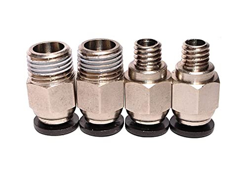Upgraded Pneumatic fittings with metal teeth provided in this package work much better than the stock options provided by many cheap 3D printer manufacturers with plastic teeth or cheap locking mechanisms. The extruder fitting is a PC4-M6 and the hotend fitting is PC4-M10. These are the standard sizes for most open source 3D printers and the same sizes used by most Chinese manufacturers.