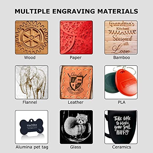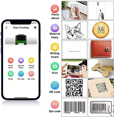 【PERFECT APP AUXILIARY FUNCTIONS THROUGH BLUETOOTH】Do not know how to control our app and machine? we have detail user guide in APP to help you enjoy the laser engraving tool.It has the functions of text editing, photography, photo album, material library, eraser and manual resizing. Engraving mode: bitmap engraving, bitmap grayscale engraving, contour cutting, black and white image, grayscale image, stamp. Operating system: Windows, Android, iOS (computer software can be compatible with Mac OS)