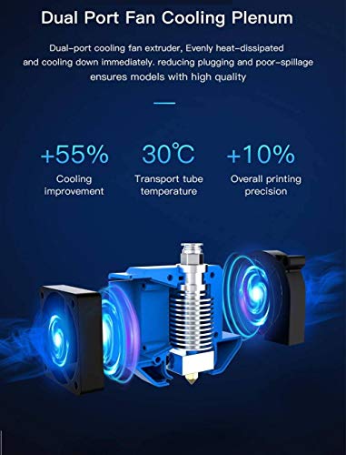 ☀2 Ports Cooling Fan Extruder: The Creality CR 10 V3 provides evenly heat-dissipated and quickly cooling down print experience, reducing plugging and poor-spillage hassle.