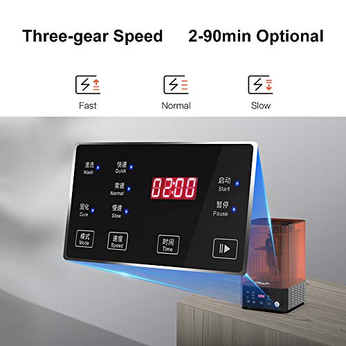 【Three-gear Speed,2-90min Optional】In order to provide a premium experience,the device equipped with touch-sensitive buttons and a smart touch screen with a large LED screen. You will complete a series of settings for mode、speed and time through the touch screen. It has three-gear speed mode, intelligently control the running speed of washing and curing,2-90min time is optional, you can choose the appropriate time independently,so that the model has better surface performance.