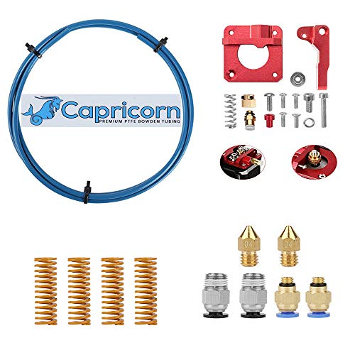 This bundle includes Capricorn PTFE Teflon Tubing which is enhanced with a proprietary blend of high performance additives. It was developed specifically for 1.75mm filament with an extremely precise 1.9mm ± 0.05mm internal diameter. Reduces the “”wiggle room,”” or buckling, inside the tube, allowing you to print flexible filaments even on the longest Bowden systems.The aluminum extruder is lightweight and strong, ensuring a more even feed rate over time .
