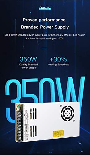 PROVEN PERFORMANCE BRANDED POWER SUPPLY: Solid 350W Meanwell power supply pairs with thermally efficient bed heater. It allows for rapid heating to 100℃