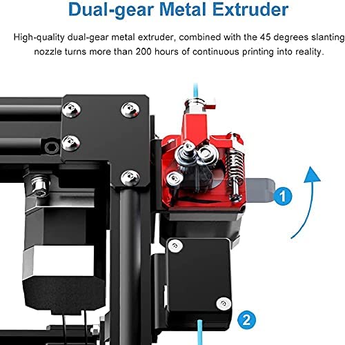 Dual-gear Metal Extruder: High-quality dual-gear metal extruder, provides better grip and filament pushing force, allows for large filament spools, combined with the 45 degrees slanting nozzle, the CR-30 is capable of 200 hours of continuous printing.