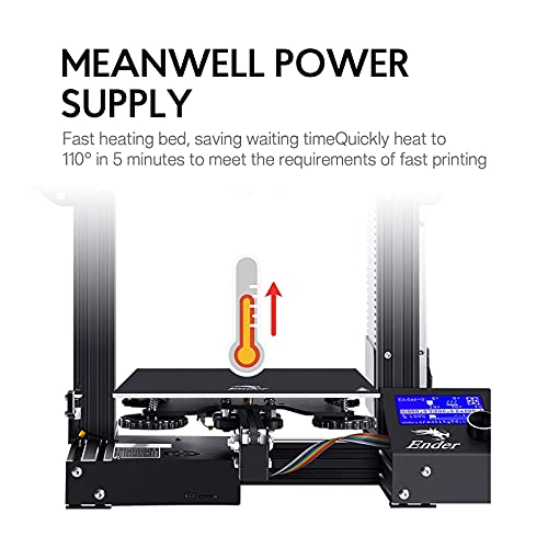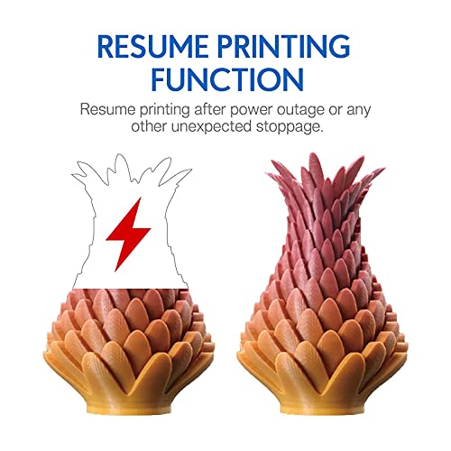 RESUME PRINTING FUNCTION: Installed with power protection device and resume printing function, the machine can continue to work after the power is restored. The hotbed can reach 110℃ in about 5 minutes to meet the needs of fast heating and printing.