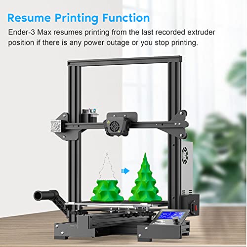 4. Resume Printing Function: Ender-3 Max supports resume printing from the last recorded extruder position after suffering unexpected power outages or your stopping printing. Ensuring excellent printing effect & use experience for you.
