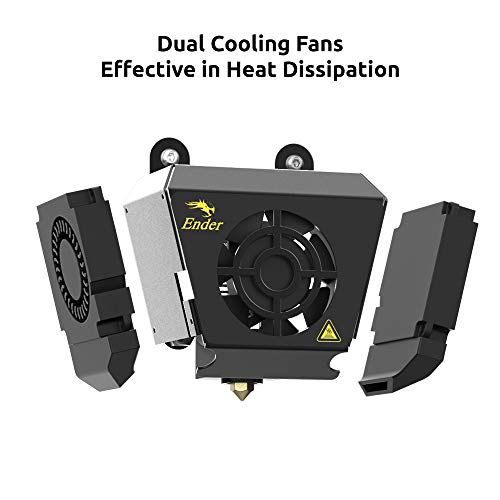 Dual Cooling Fans: The axial cooling fan continuously helps hotend heat dissipation. The double blower fans promote quick cooling on the extruded filament. Always deliver fine results.