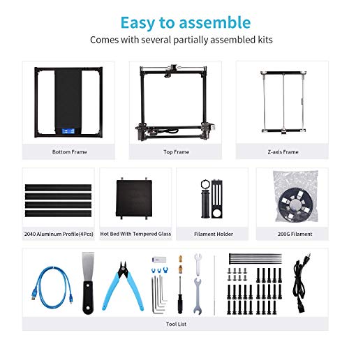 Easy to Assemble and Operate: Ender 5 Plus uses touch color screen for easy and quick operation. It comes with several partially assembled kits, very easy to assemble and allow you to learn about the basic construction of 3D printer.