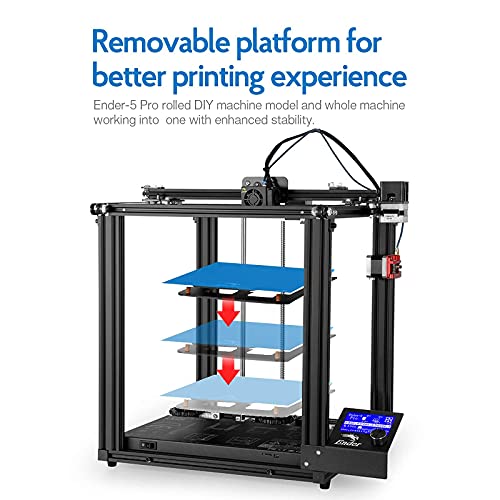 【 Creality Ender 5 Pro vs Ender 5 】Ender 5 Pro With three upgrade Features, V4.2.2 Silent Mainboard, Metal Extruder Frame, Premium PTFE Tube. Solid cube frame and Semi-assembled kits easy to install, it ensures a better printing quality.