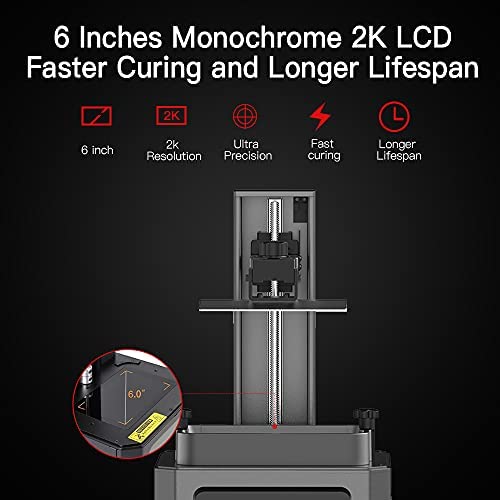 6-INCH 2K MONOCHROME LCD SCREEN: With a 2560 x 1620 pixels resolution, 6-inch monochrome LCD screen gives a print granularity of ~50 microns, which is the par score for most of the popular budget 3d resin printers currently on the market.