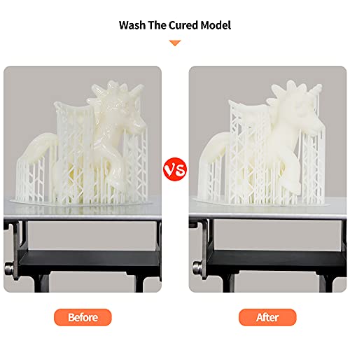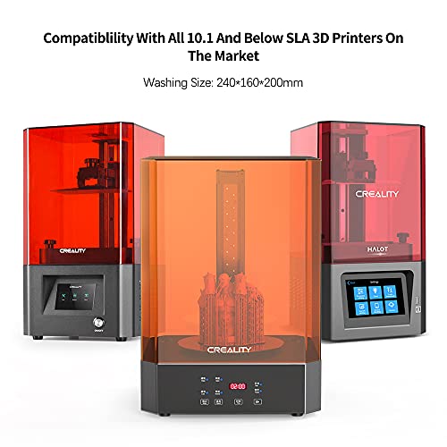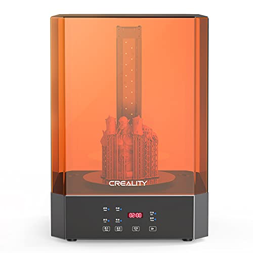 2-In-1 Wash and Cure Station: Creality UW-02 wash and cure machine, supporting dual functions of cleaning and curing, can not only wash the uncured resin, remove most of the chemicals, settle scrubbing and mess issues, but also seriously streamline the whole post-processing. Especially, the UV light treatment gives your printed objects excellent surface properties if they have soft texture. A professional and quick solution to the messy clean up job of your wonderful printing life.