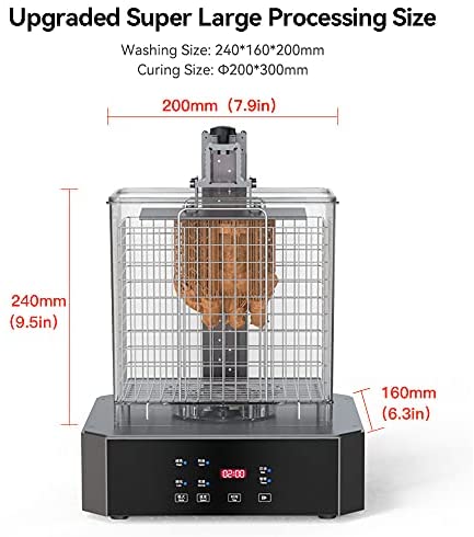 Super Large Washing and Curing Size: The CREALITY upgraded 10.1 inch washing and curing machine has a large washing/curing space, the maximum processing size can reach up to 9.5×6.3×7.9 inch/240x160x200mm, which is much larger than the other products. It can meet your processing needs of larger printing models.