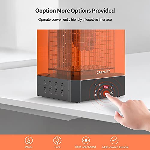 Optional Speed & Time – Define as you like Wash Speed/Time, slow/normal/quick 3 gear speed adjustable and 2/5/10/15/20/30min time adjustable freely. Equipped with touch LED high-definition LCD display and friendly Interactive Interface to operate conveniently, the Creality UW-02 gives you a premium experience.
