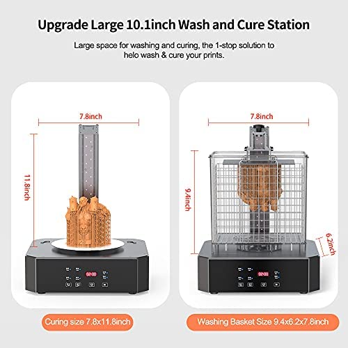 10.1 inch Wash and Cure Box – Compatibe with all SLA/LCD/DLP UV curing printers of 10.1inch and below. The washing basket size 9.4×6.2×7.8inch, Curing size 7.8×11.8inch . All-in-one for washing and curing, which can Integrated automatic help you complete the cleaning of the resin 3d printer model. Curing 3d printed parts by controlling light, speed, and time accurately.