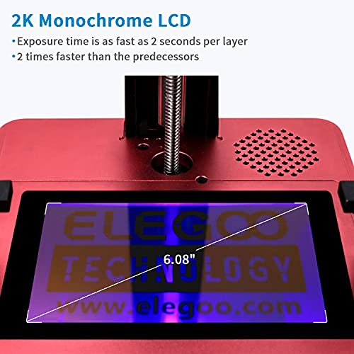 Speedy Mono-LCD Printing – Equipped with 6.08 inches monochrome LCD of 2K HD resolution, ELEGOO Mars 2 Pro exposure time is as fast as 2 seconds per layer, 200% faster than its predecessors