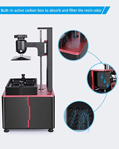 【Sturdy build quality】CNC machined aluminum body makes Mars 2 Pro a very formidable machine. Newly-designed sandblasted build plate has a much stronger adherence during printing and enables consistent printing success. Built-in active carbon could absorb the fume of resin and offer you a refreshing printing experience.