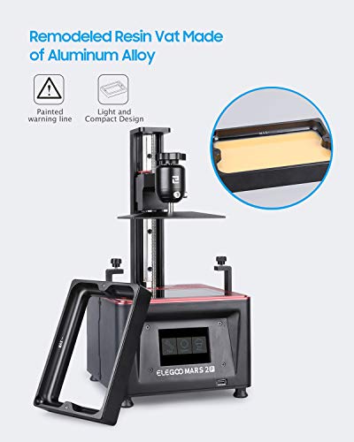 ELEGOO Mars 2 Pro MSLA 3D Printer is ELEGOO first 6.08 inch LCD 3D Printer that uses monochrome LCD and COB UV light source. It has 50μm XY precision and high printing speed at 1.5-2s/layer. Extra building volume can meet most of your printing needs from industrial parts to board game miniatures.