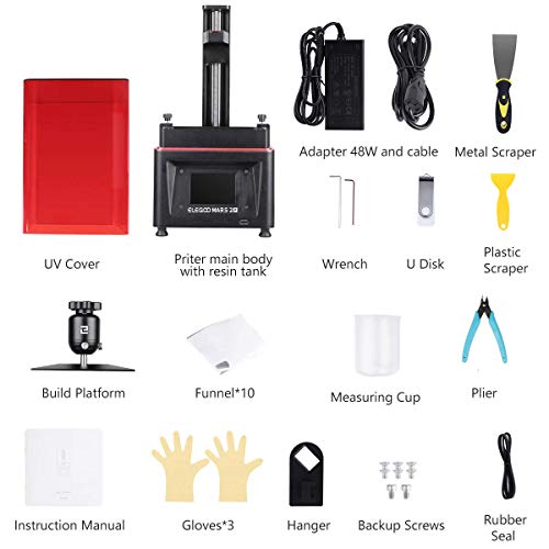 Resin Tank * 1Build Platform * 1Metal Scraper * 1Plastic Scraper * 1User Instruction * 1Glove * 3Funnel * 10