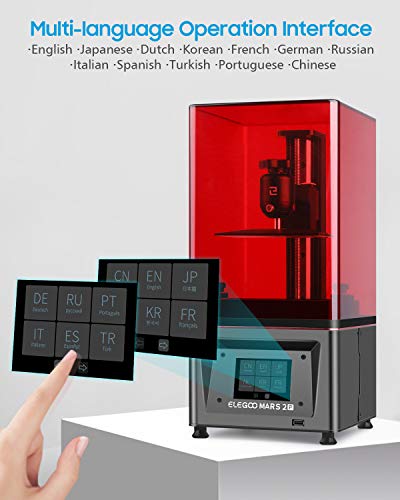 【Multi language interface】Mars 2 Pro now supports 12 kinds of languages so customers across the world could operate the 3D printer more conveniently without barriers. The newly added 10 languages are Japanese, Dutch, Korean, French, German, Russian, Italian, Spanish, Turkish and Portuguese.