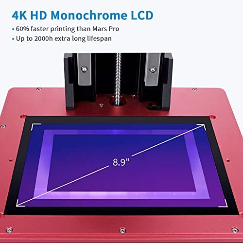 Speedy Mono-LCD Printing – Equipped with 8.9 inches monochrome LCD of 4K HD resolution, Saturn exposure time is as fast as 2-3s per layer, 60% faster than Mars Pro