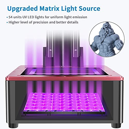 Sharp and Precise Details – Upgraded LED light matrix for more uniform UV distribution, combined with 4K mono LCD, providing outstanding printing quality and better details