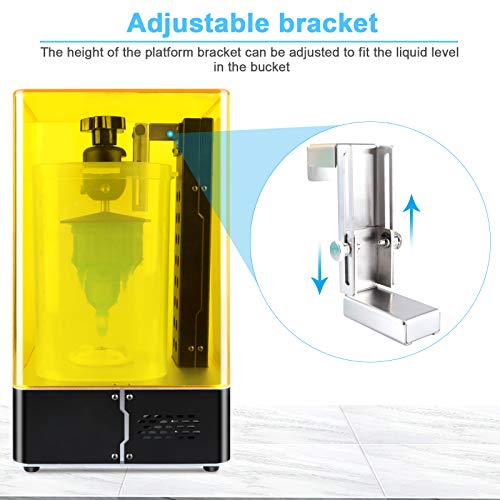 Flexible Washing Mode: 2 modes of Cleaning: 1. Place the printed model in the cleaning basket for separate cleaning. 2. Mount the build plate with model on the washing machine for cleaning to avoid direct contact with the uncured resin. The height of the platform bracket can be adjusted to fit the liquid level in the bucket.