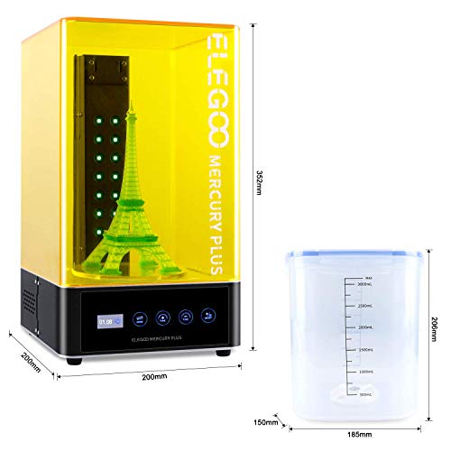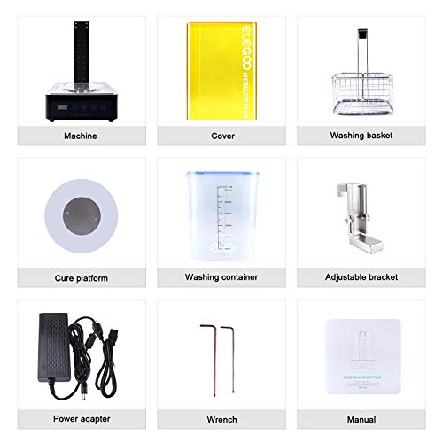 2 in 1 Washing & Curing Machine: Dual Function design seriously streamline the whole post-processing, which makes washing and curing for 3D printed models in one machine. ELEGOO Mercury Plus is a professional solution to save your time and money