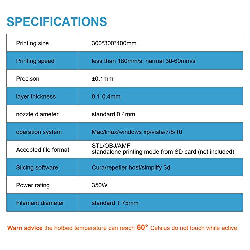 Silent printing with the new mainboard chipset, keep your focused.Print big models efficiently at once thanks to a printing area of 300×300×400mm.Good start for creative makers who like to combine quality and budget. Upgraded to Titan direct drive after May 23. BL touch is available as optional add on.Kits are ready to be mounted easily and quickly.Multi-language:English, Italian, Spanish, French