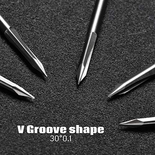 Shank diameter: 1/8” (3.175mm) Shank; 30/60/90 deg 0.1mm V Bit