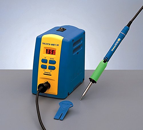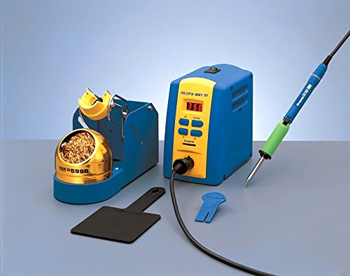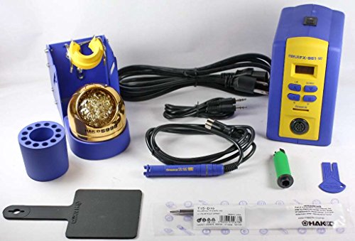 Bring a new design to your Workstation with the fx-951 soldering station. This station delivers the superior heat transfer and thermal recovery and uses quick-change composite tips. Includes: fx951-66, soldering station, fm-2027 connector with green sleeve assembly, fh200-01 iron holder with 599B tip cleaner, key card, heat pad, tip tray, connector and power cords. Features: compact, space-saving design lockout key car prevents unauthorized changes to temperature settings low temperature alarm warns operation of potential cold joints locking sleeve assembly optional sleep mode functionality with iron holder auto power shutoff after 30 minutes adjustable iron holder angle specifications: station: power consumption: 75W temperature range: 200-450degree C (400-840degree F) temperature stability: 5Degree C (9Degree F) output: 24V fm-2027 hand piece: power consumption: 70W (24V) tip-to-ground resistance: < 2ω tip-to-ground potential: < 2mV. The FX951 isn’t normally supplied with soldering tip/heater assembly. This bundle includes a free 1.6mm chisel tip soldering tip/heating element (Hakko t15-d16).