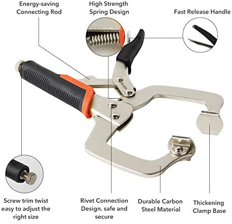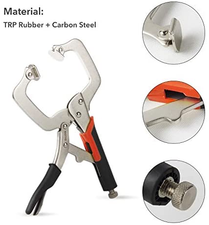 WIDELY USAGE – The C-clamp can be used on most kinds of clamping, fitter, welder holding metal parts, rotating steel pipe work ,hot work, etc. HIGH QUALITY & DURABLE MATERIAL – Made of high quality carbon steel with rubber grip, good anti-rust effect. It can be used for a long time. HUMANIZED DESIGN – The locking pliers with the swivel pad to clamp wooden joints and the auto car body panels while avoiding damage. Ergonomic design of the handle with the rubberized soft-grip, reducing hand fatigue, and more comfortable and effortless, and suitable for long hours of work. EASY TO USE – Turn the screw to adjust pressure to work. Releasing your hands, it’s an essential accessory tool.
