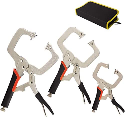 3 Pack Set Locking C-Clamp Set, 6 Inch, 9 Inch and 11 Inch Heavy Duty C-Clamps Pliers Tools with Storage Bag for Craftsmen, Home & Workshop Use