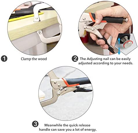 Clamp the woodThe adjusting nail can be easily adjusted according to your needs.Meanwhile the quick release handle can save you a lot of energy.